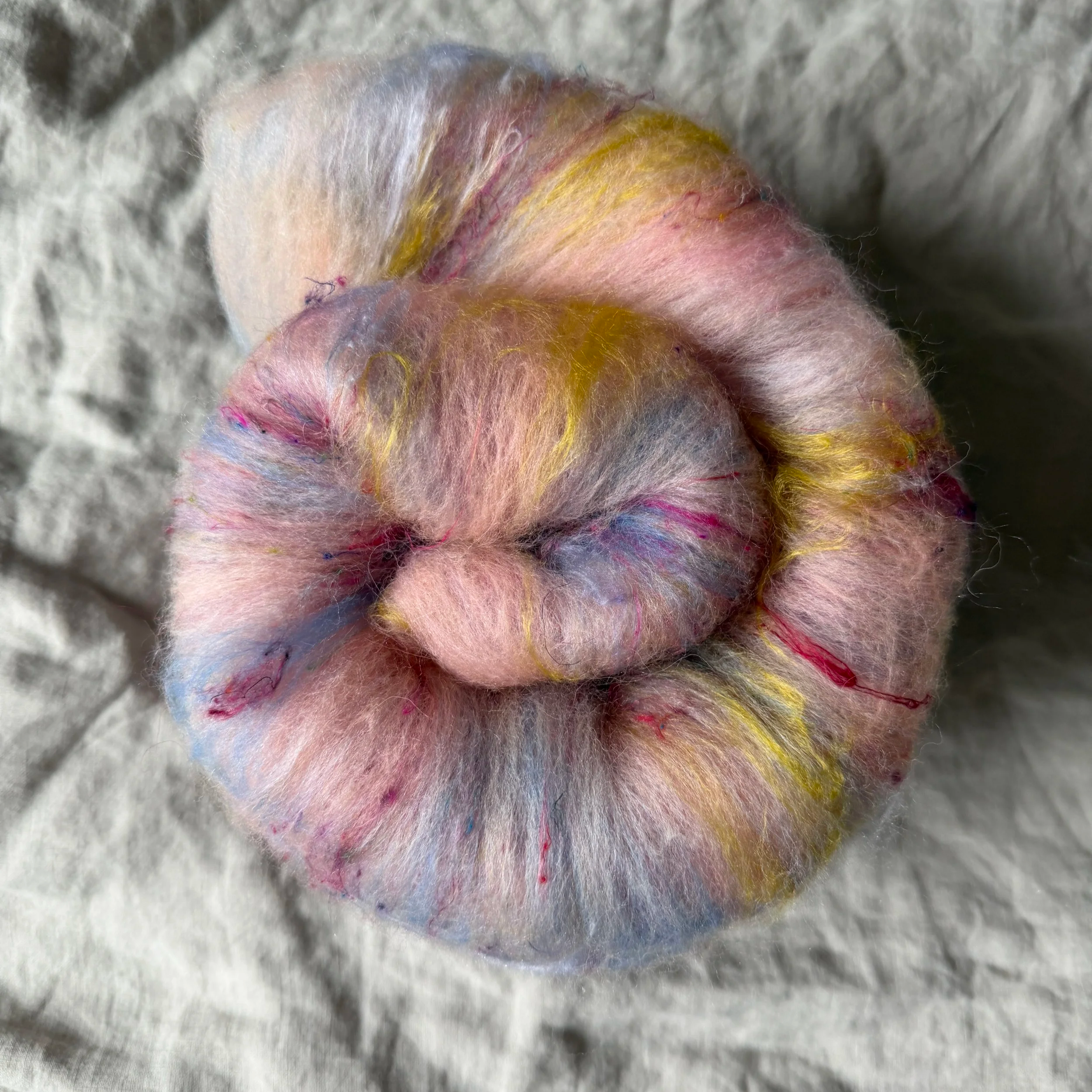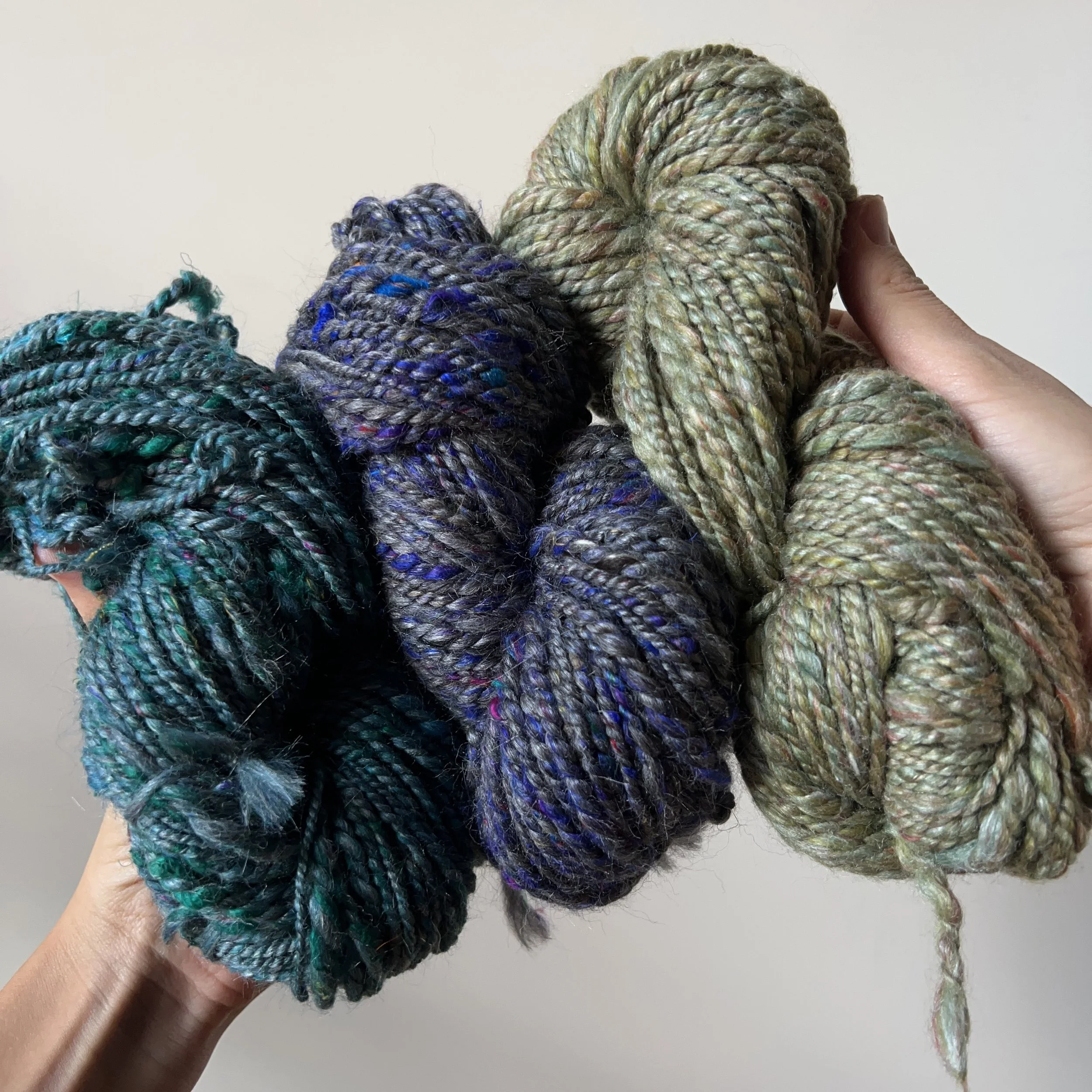 Hi, I’m Kait! I’m a fiber artist who loves to spin, dye, knit, crochet, and sew. My passion lies in creating one-of-a-kind yarns, each hand-spun and hand-dyed with care. I find inspiration in nature’s textures and colors, transforming them into wearable art.
